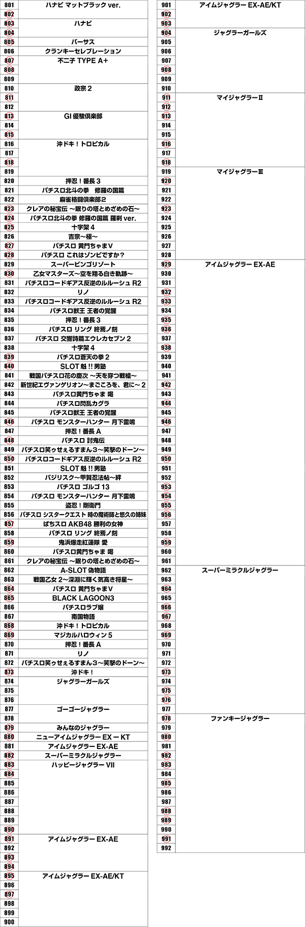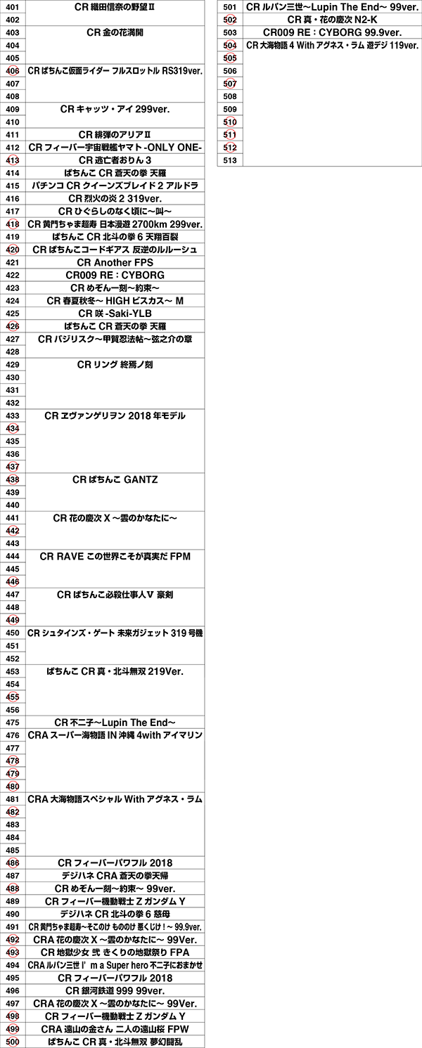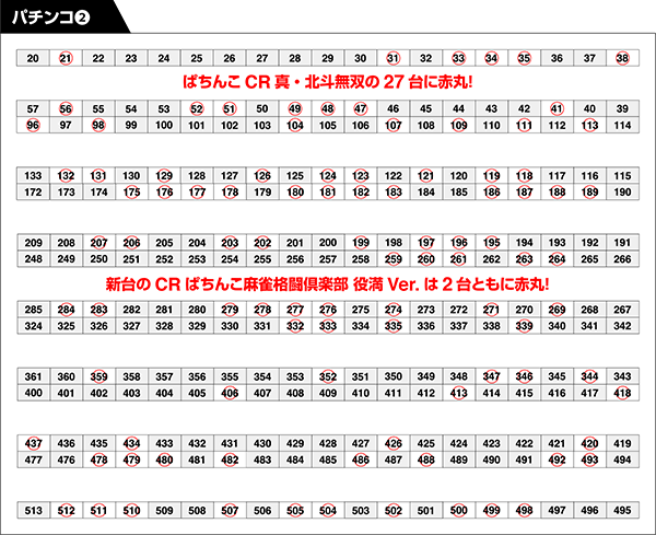 さまざまな機種が並ぶなかで、赤丸にふさわしい台がいくつあるのか楽しみである。