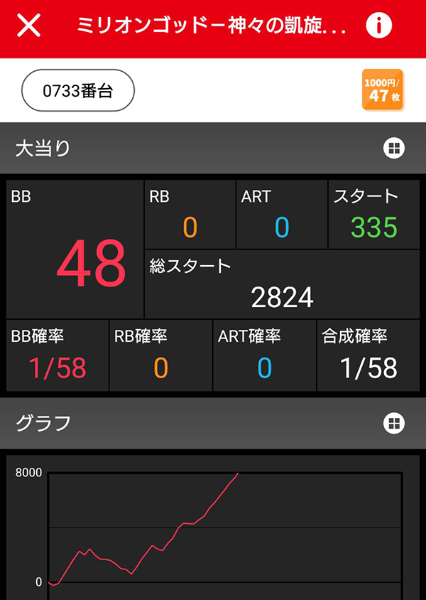 パチスロでは、「ミリオンゴッド-神々の凱旋-」に9個の赤丸をつけた。