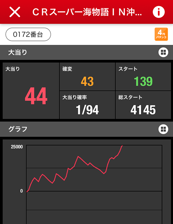 プレイヤーが遊技を満喫していたことは、データ表示機に描かれたグラフをみても一目瞭然だろう。