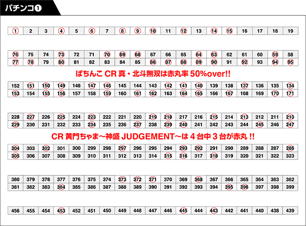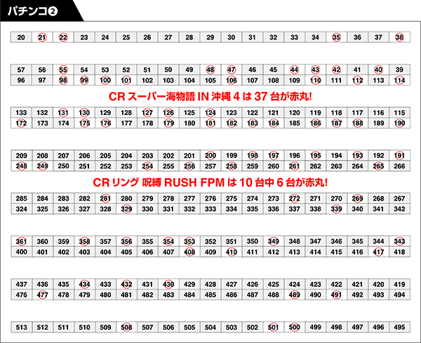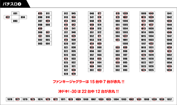 パチンコとパチスロの各シマにまんべんなく赤丸をつける結果となった。