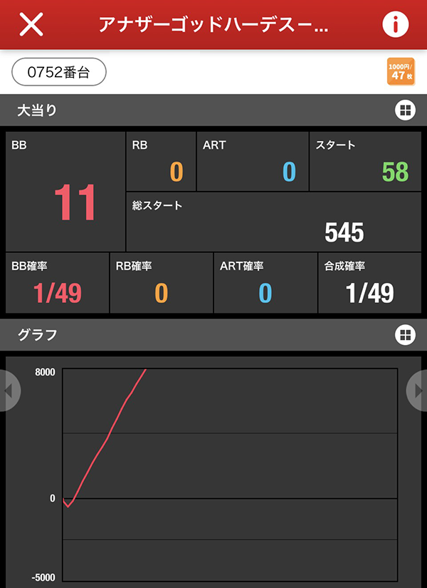 「アナザーゴッドハーデス」にも8000発以上を獲得している姿があった。