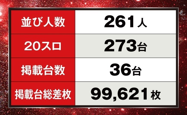 朝から20スロの設置台数とほぼ同じくらいの261人のファンが列を作った。