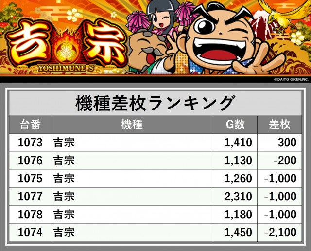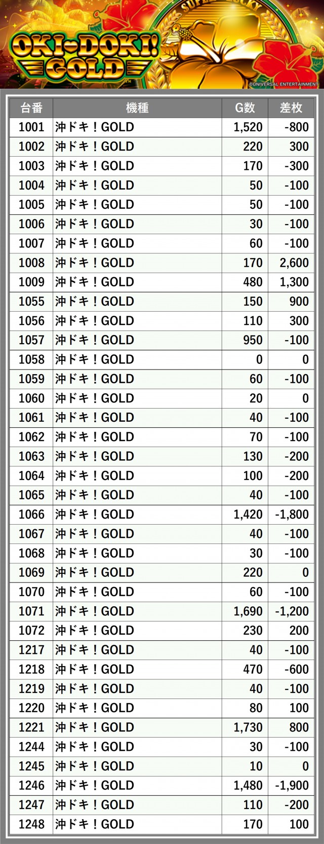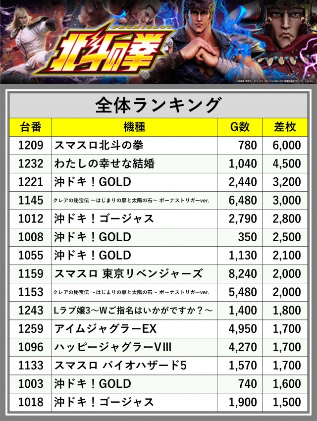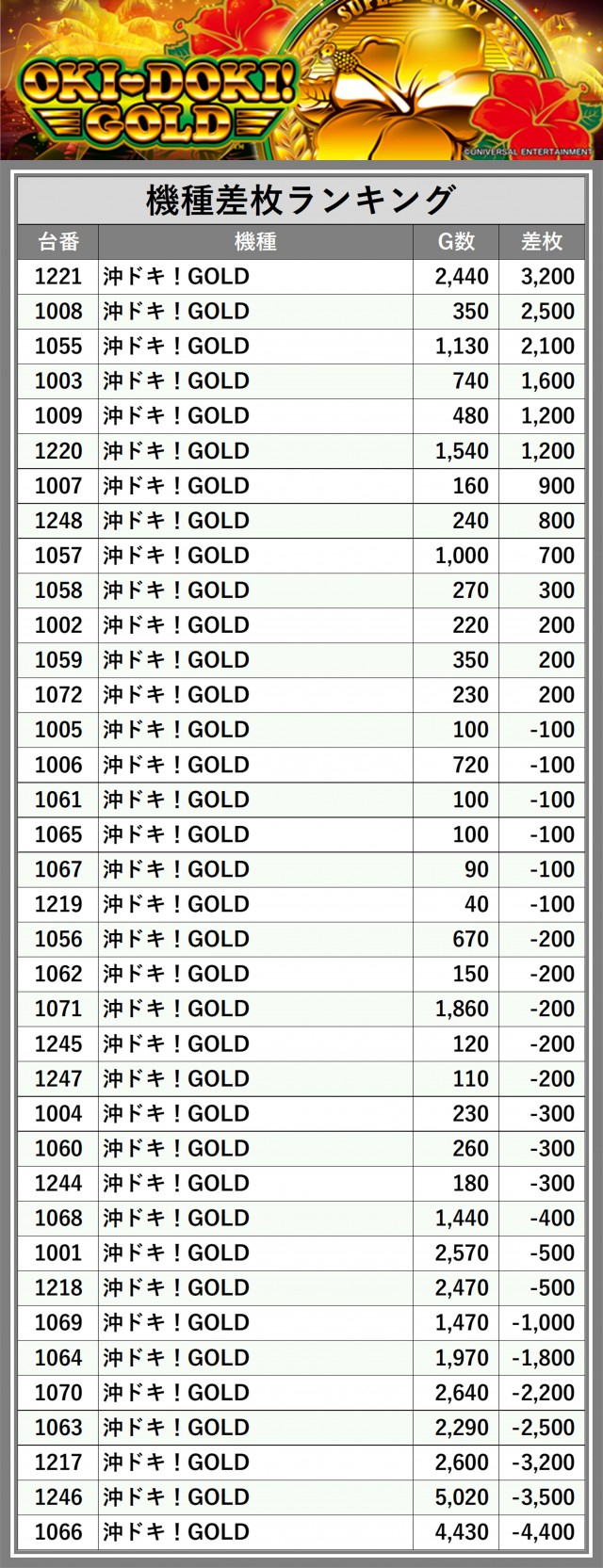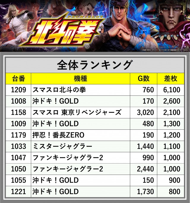 厳選された取材対象機種をはじめ、その他スロット全体から好記録が飛び出した!プレイヤーが楽しんだ1日を下記データにて振り返ってみて欲しい。