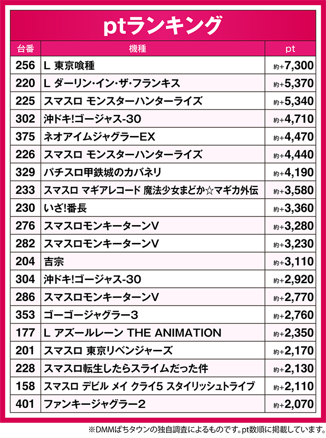 ※なお、本記事中のデータは全てDMMぱちタウンの独自調査によるものです