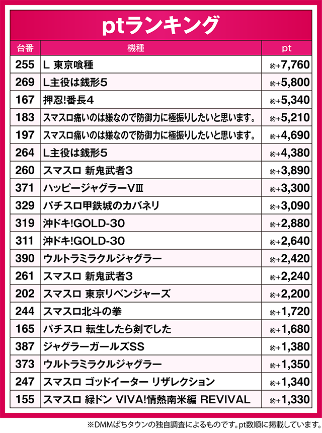 ※なお、本記事中のデータは全てDMMぱちタウンの独自調査によるものです
