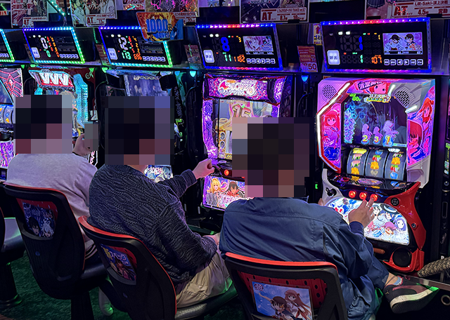 1台設置の機種もにぎやかで、「L咲-Saki- 頂上決戦」や「スマスロ転生したらスライムだった件」などでプレイヤーが活躍中!