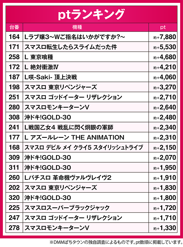 ※なお、本記事中のデータは全てDMMぱちタウンの独自調査によるものです