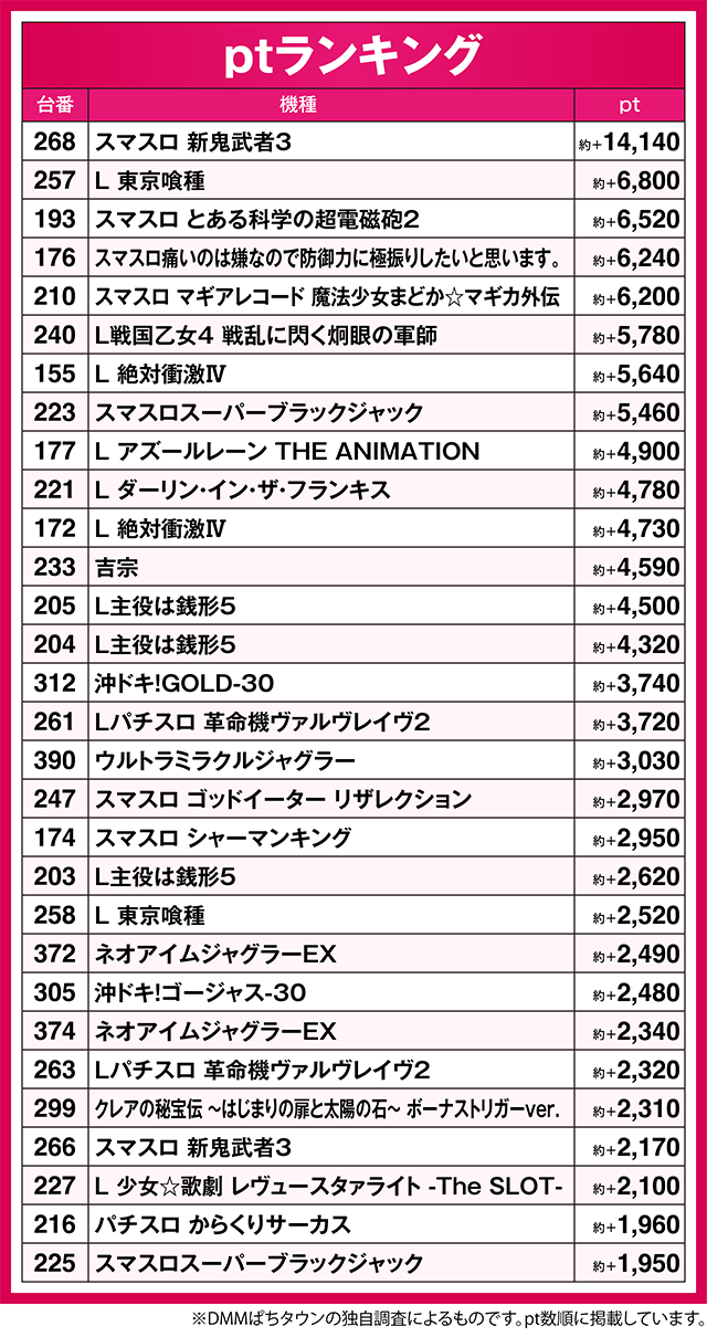 ※なお、本記事中のデータは全てDMMぱちタウンの独自調査によるものです