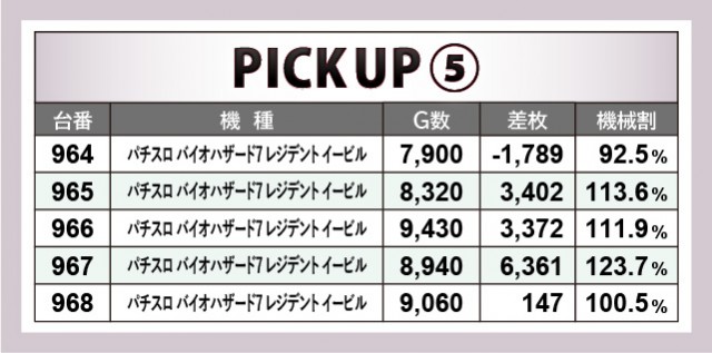 『SLOT劇場版魔法少女まどか☆マギカ[新編]叛逆の物語』と『パチスロ楽園追放』、『パチスロ バイオハザード7 レジデント イービル』、『Re:ゼロから始める異世界生活』と『パチスロラブ嬢Ⅱ』と『麻雀格闘倶楽部参』といった機種群にいても、熱気を放っていた様子を多々確認できた。こと『パチスロ バイオハザード7 レジデント イービル』は朝から人気を集め、ファンが粘り強く戦っていた形跡も見られるエリアだ。