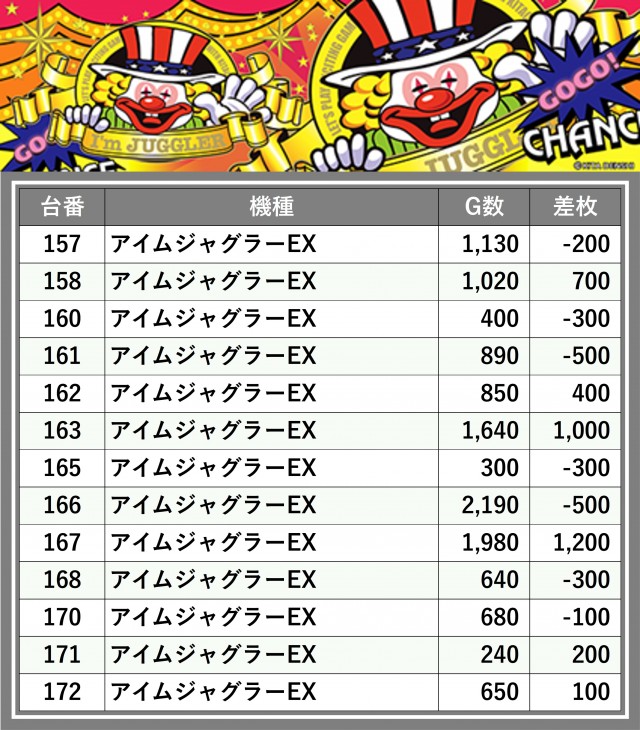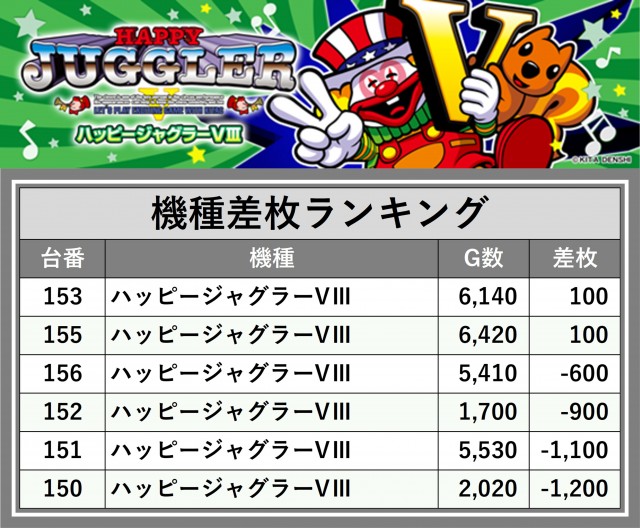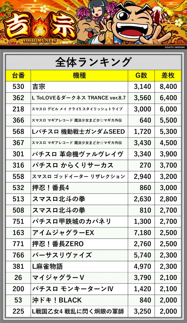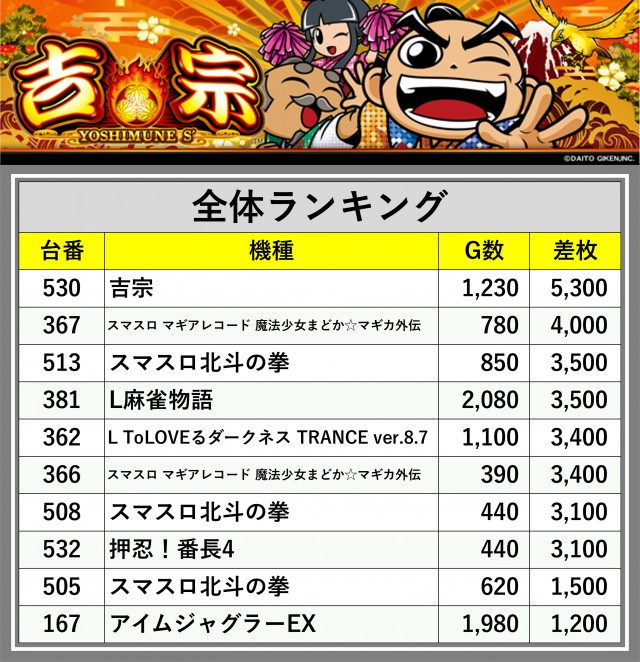 ※差枚数順に掲載しています