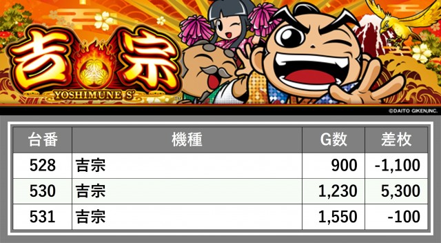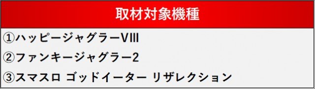 厳選された取材対象機種をはじめ、その他スロット全体から好記録が飛び出した!プレイヤーが楽しんだ1日を下記データにて振り返ってみて欲しい。