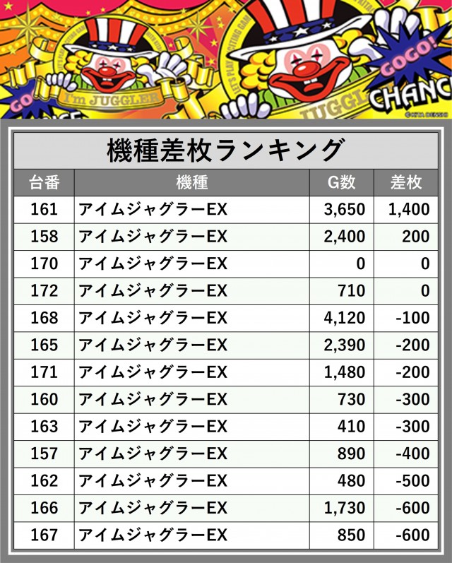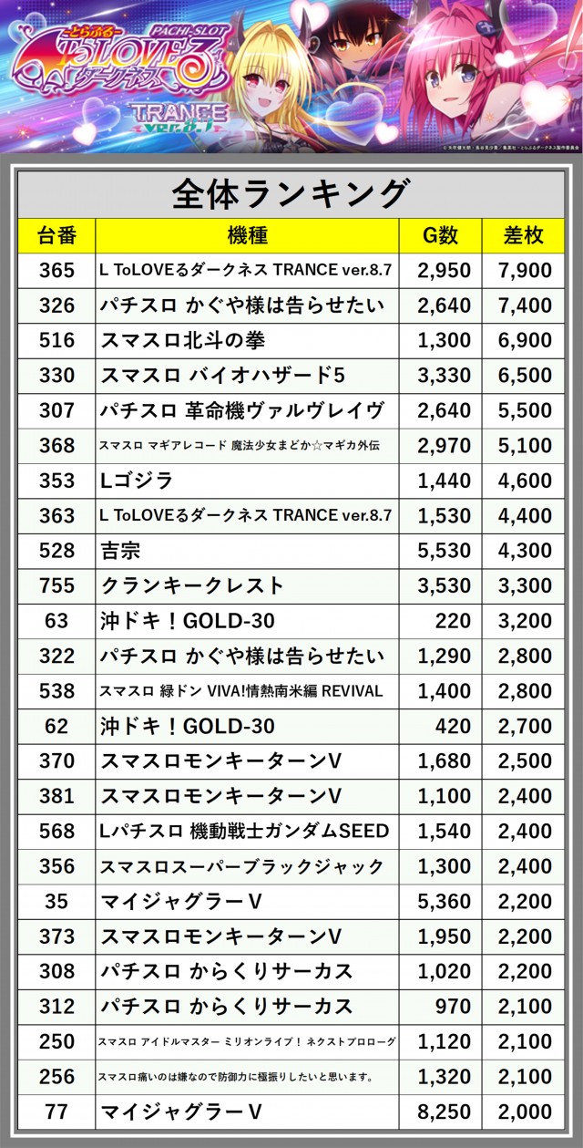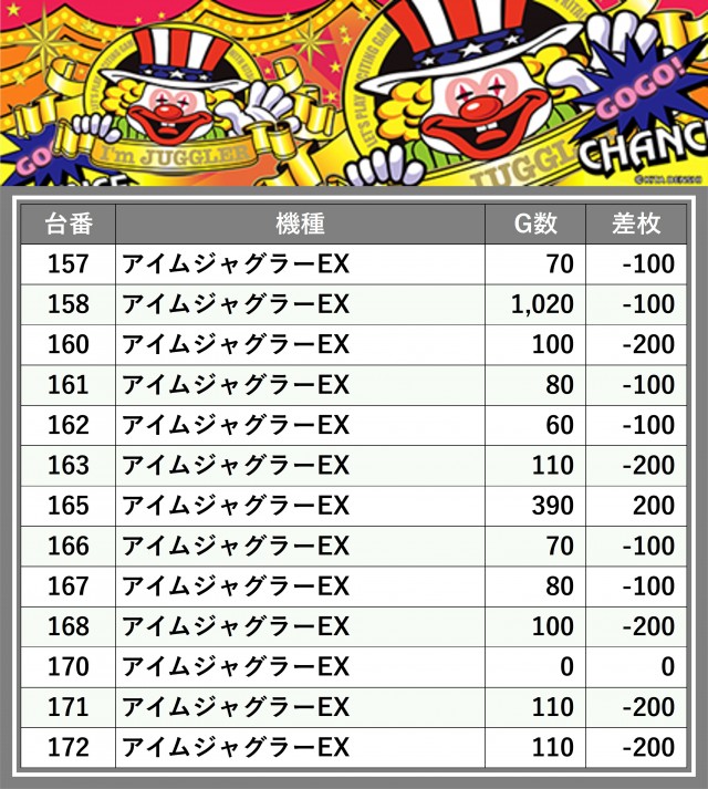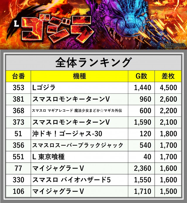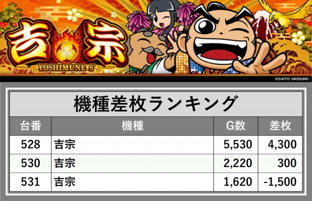 厳選された取材対象機種をはじめ、その他スロット全体から好記録が飛び出した!プレイヤーが楽しんだ1日を下記データにて振り返ってみて欲しい。