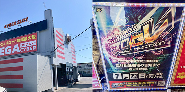 7月23日(水)メガサイバースロットパチンコ市原店にて、DMMぱちタウンの新感覚取材「スロセレ」を実施。