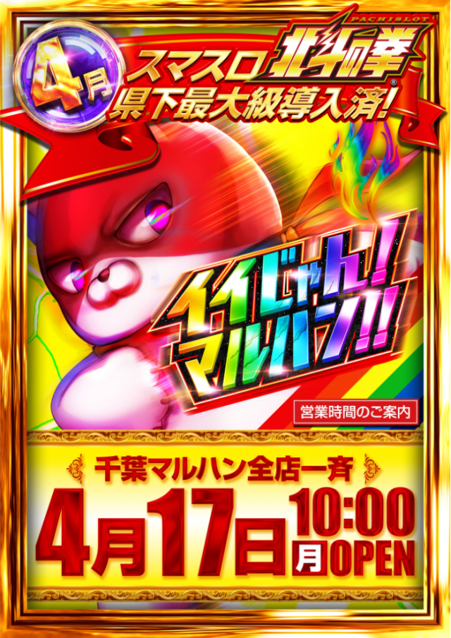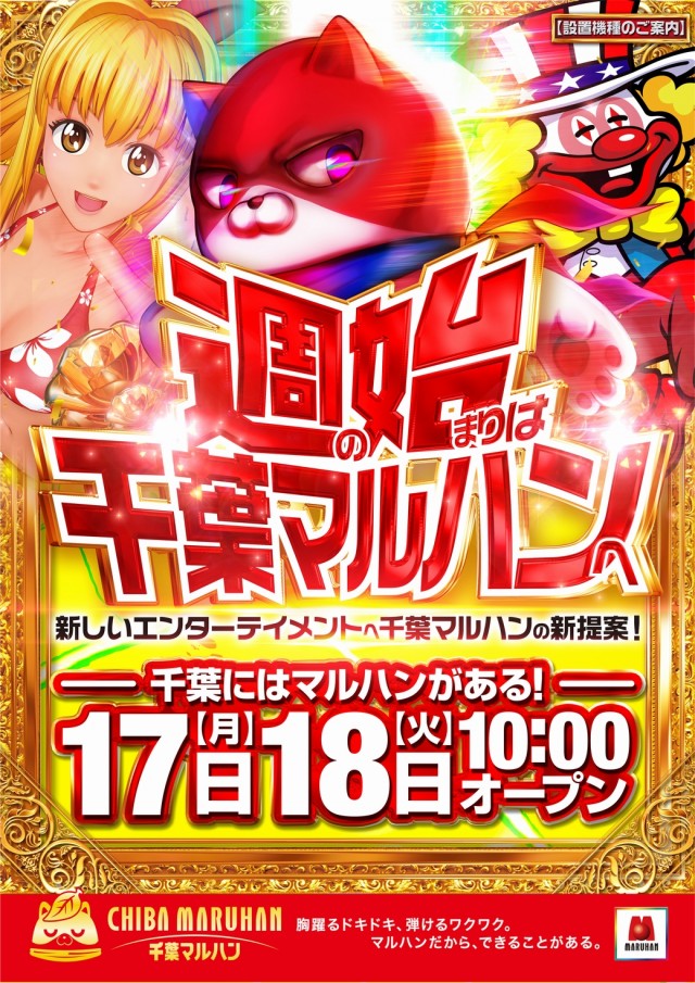 17日(月)=千葉マルハン全店一斉= 10時オープン!!