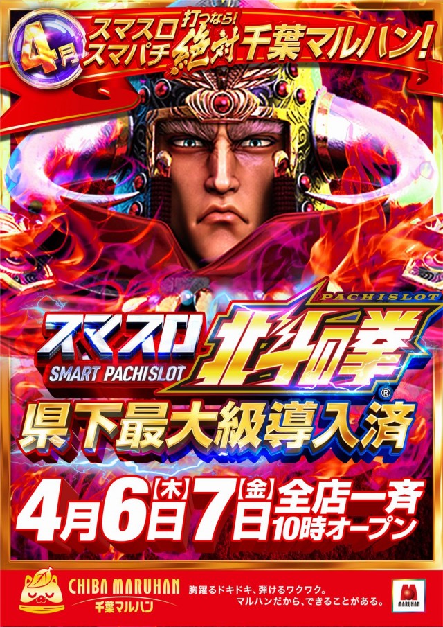 4月6日(木)大型新台入替2日目! スマスロ北斗絶賛稼働中!