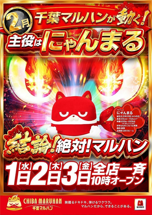 2月3日(金)千葉マルハン全店一斉10時開店!