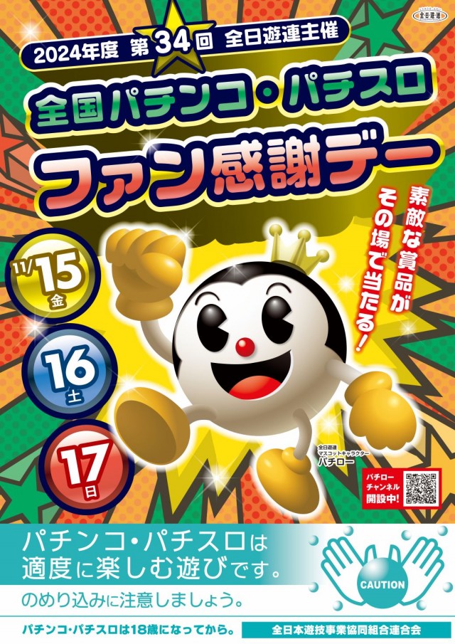 11月15日新台入替 全国パチンコ・パチスロファン感謝デー