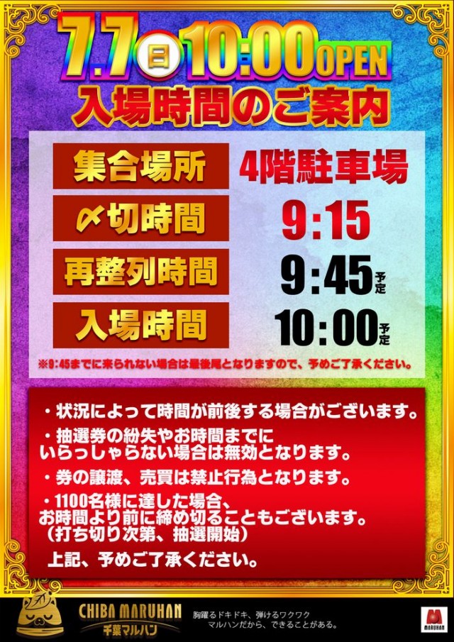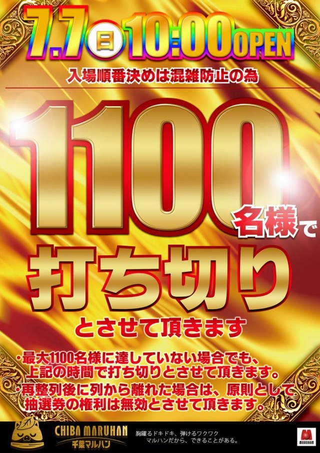 7月6日(土)あさ10時開店!!7月はマルハン!!