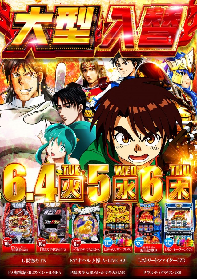 6月5日(水)新台入替完了!10時開店!最新台続々登場!!