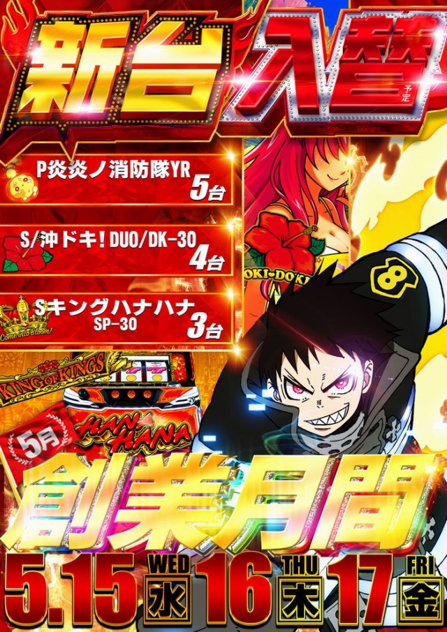 5月15日(水)新台入替!5月は13機種45台導入予定!