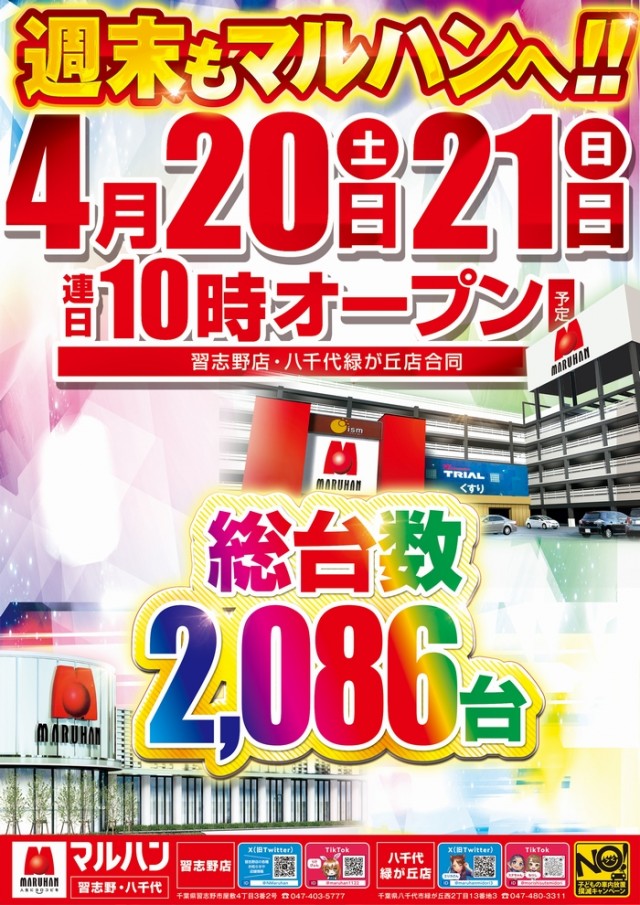 4月20日(土)10時開店!話題の最新台導入済み!