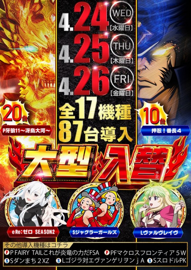 4月25日(木)★☆大型新台入替完了☆★朝10時開店!