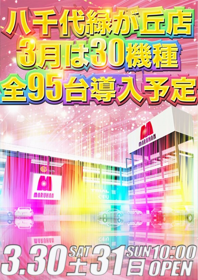 3月30日(土)10時開店! 3月は30機種95台導入予定!