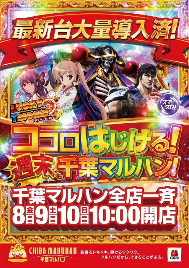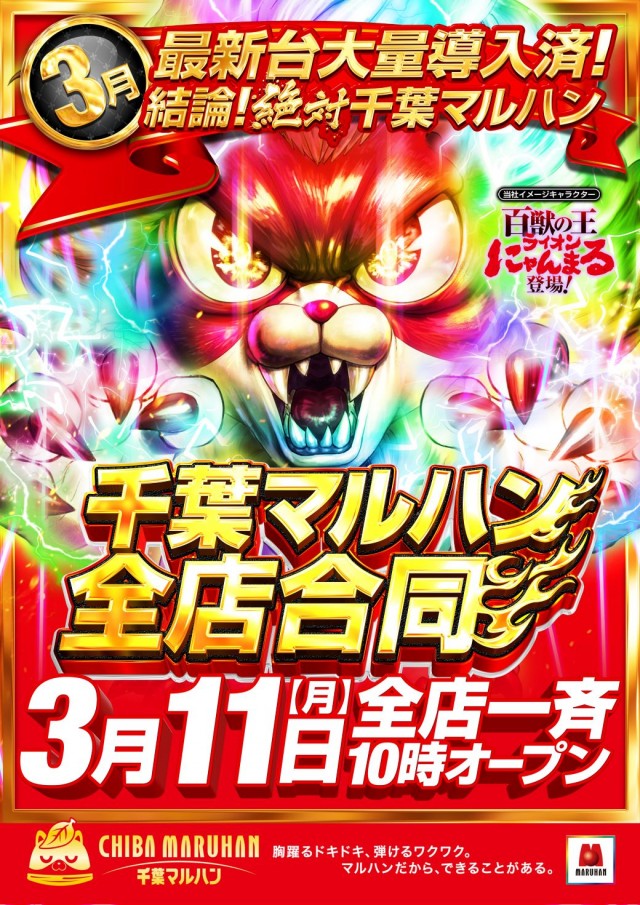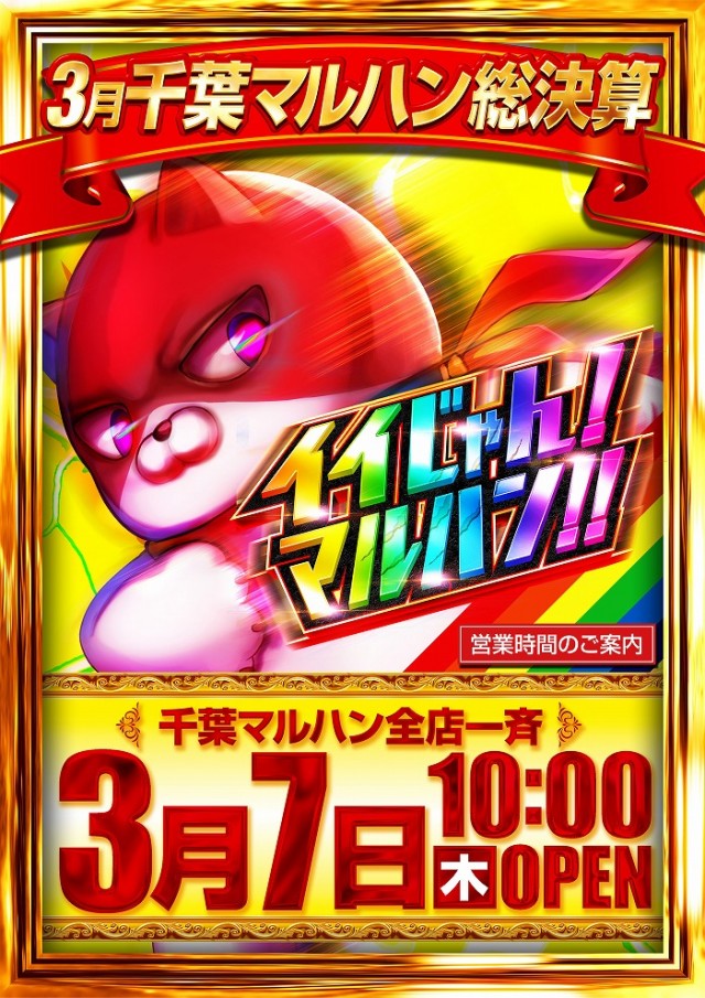 3月7日(木)千葉マルハン全店10時開店!大型新台入替済!