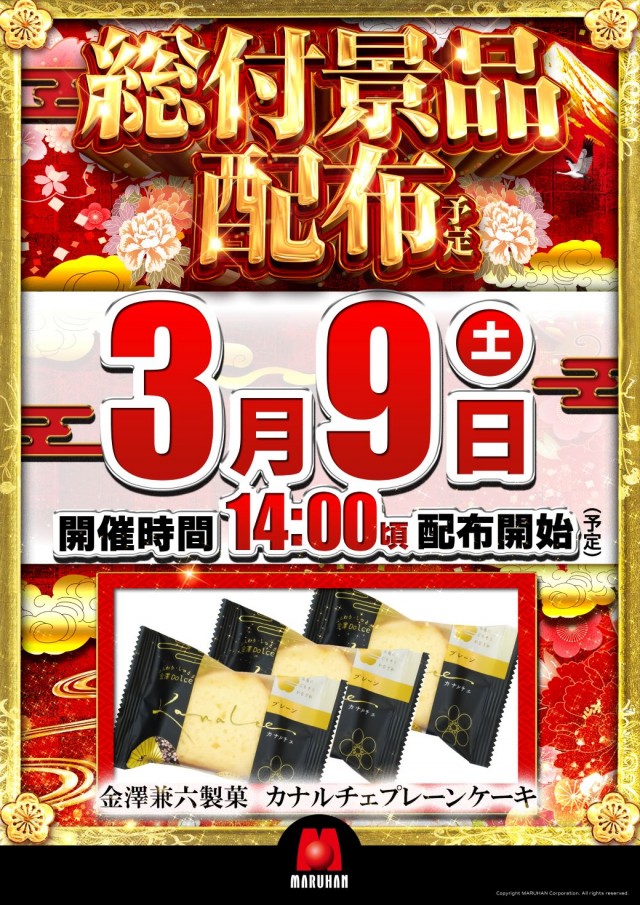 3月9日(土)10時開店!3店舗合同入替済!総付景品配布!