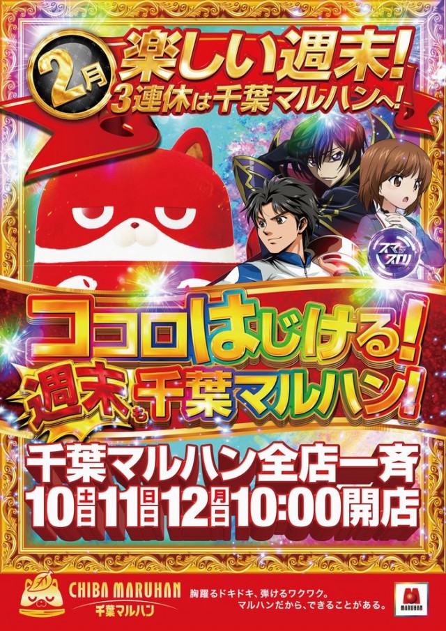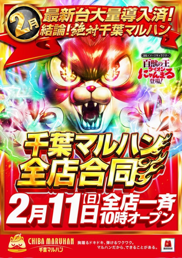 2月10日(土)千葉マルハン全店10時開店!合同新台入替!
