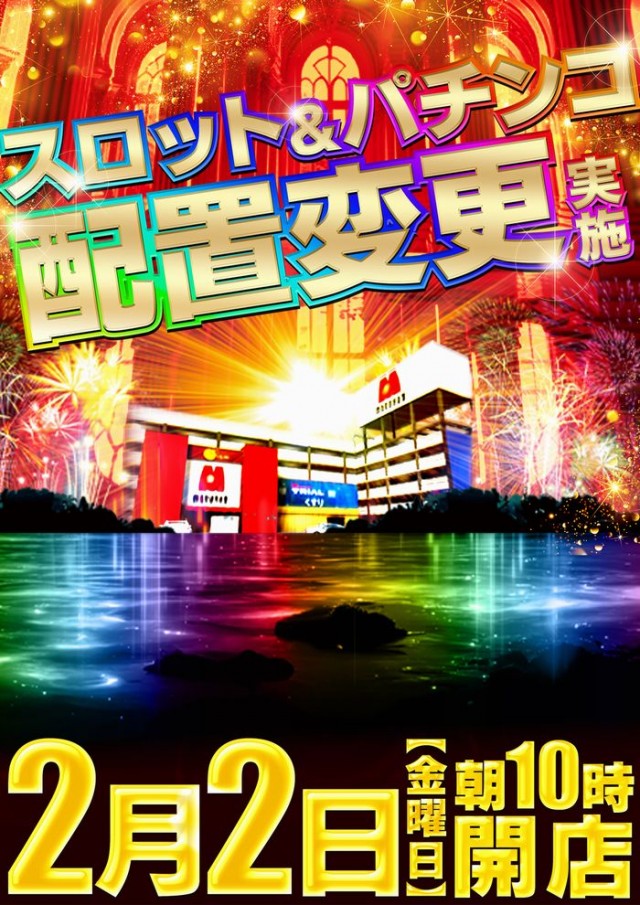 2月2日(金)朝10時開店!スロット&パチンコ配置変更!