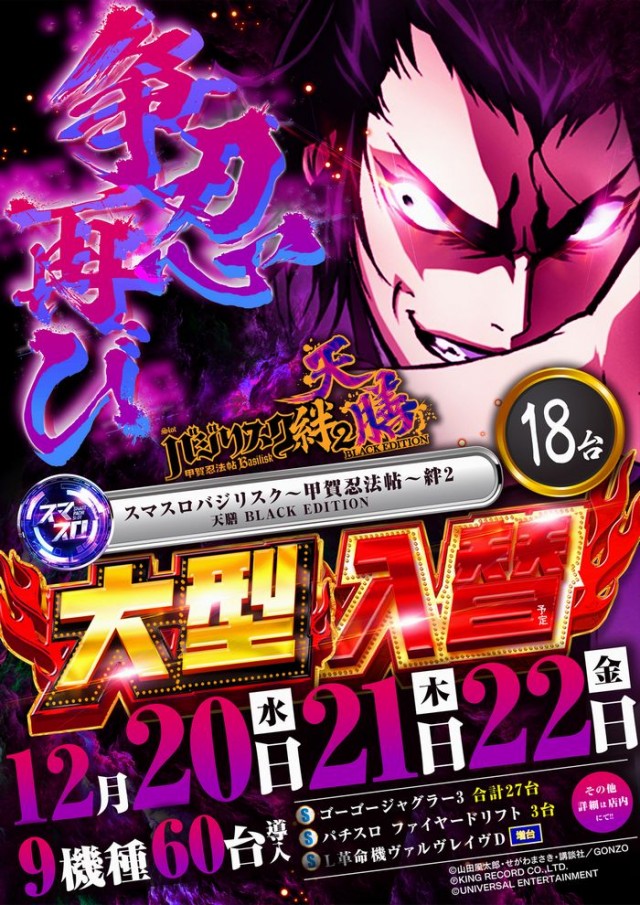 12月20日大型新台入替❗9機種60台導入予定❗あの機種も❗