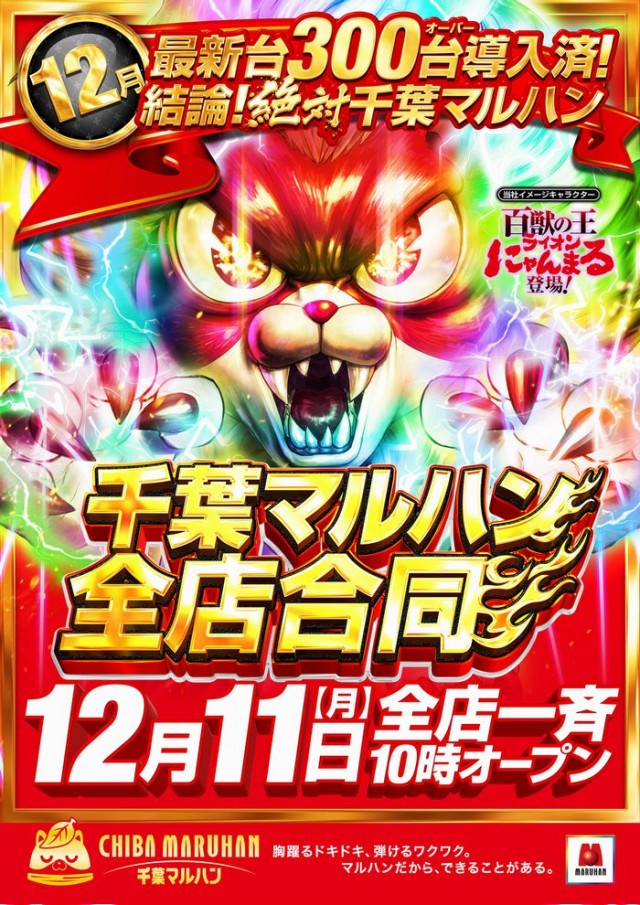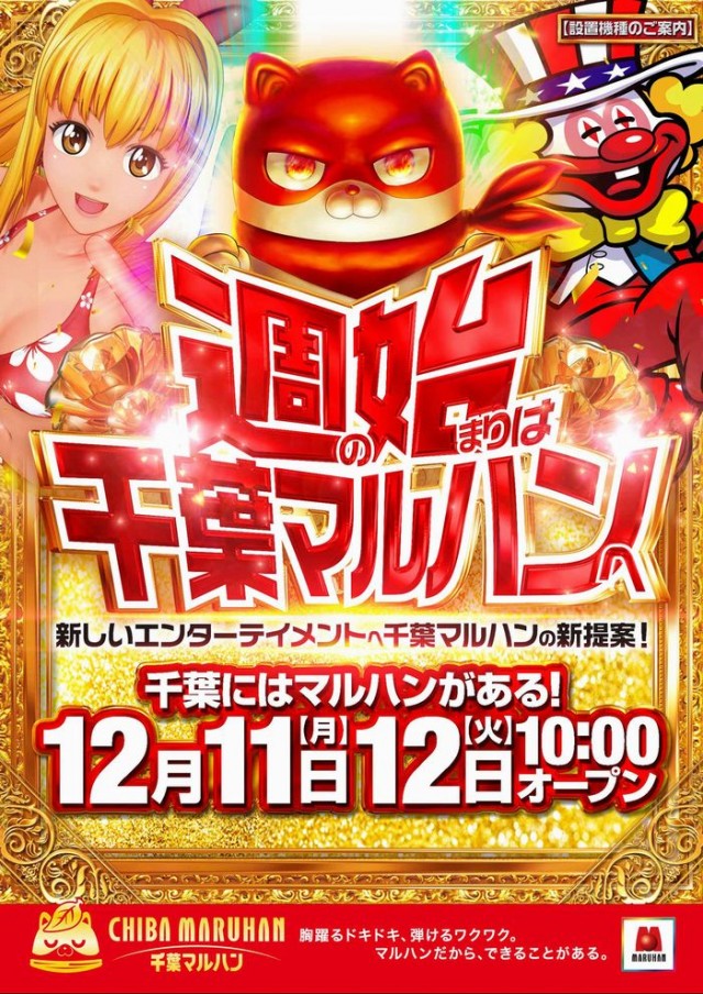 12月12日(火)朝10時開店!最新台多数導入済み!