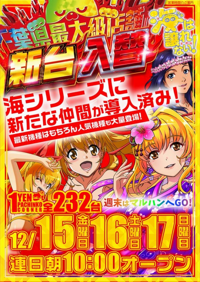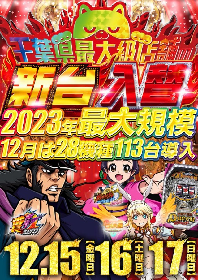 [12月は新台導入数☆最大規模]15日(金)=新台入替=