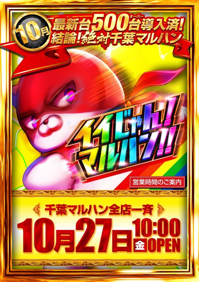 10月28日10時開店!千葉マルハン全店合同 新台入替!