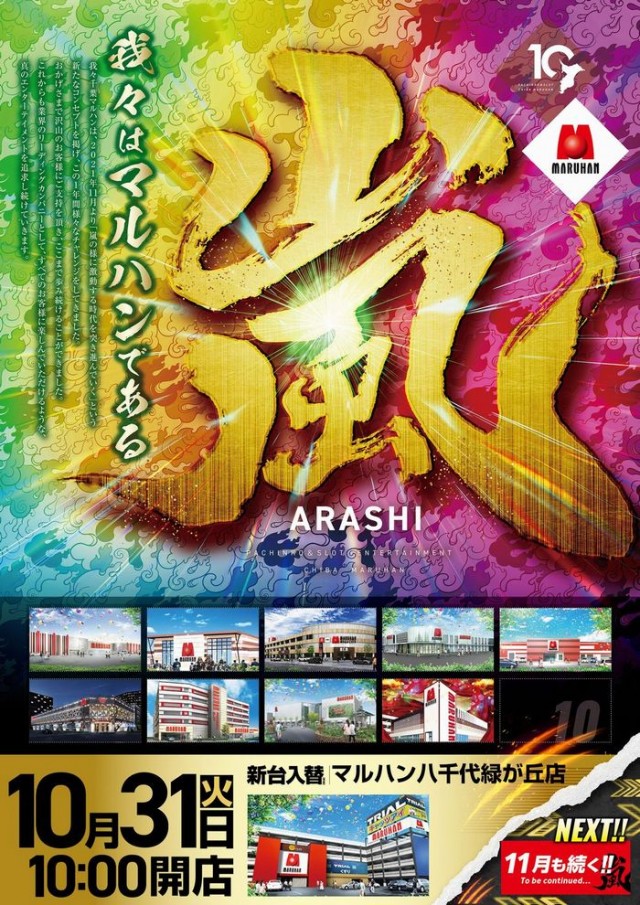 10月31日(日)朝10時開店!新台入替【嵐】!