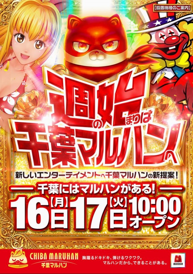 17日(火)新台入替10時オープン!イイじゃん!マルハン!!