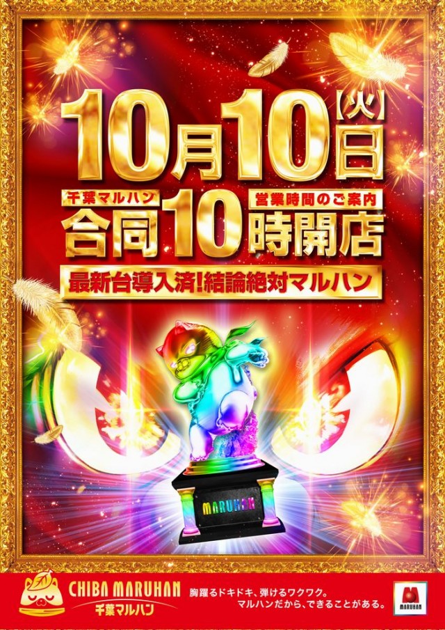 10月12日(木)朝10時開店!新台打つならマルハンへ!
