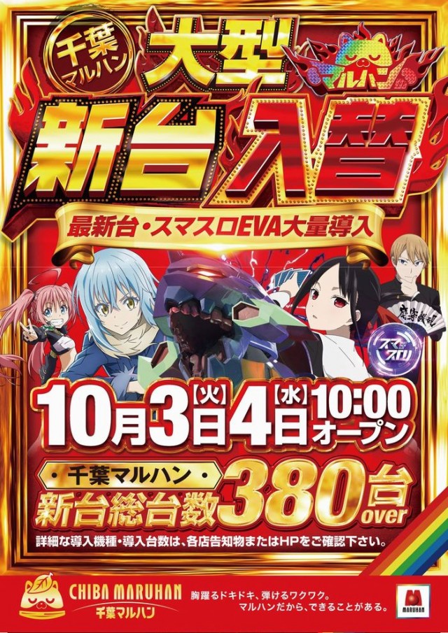10月4日(水) 大型新台入替! 最新台10機種59台導入!
