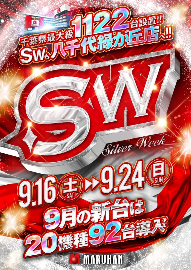 9月19日(火)10時開店!9月最新台20機種92台導入予定