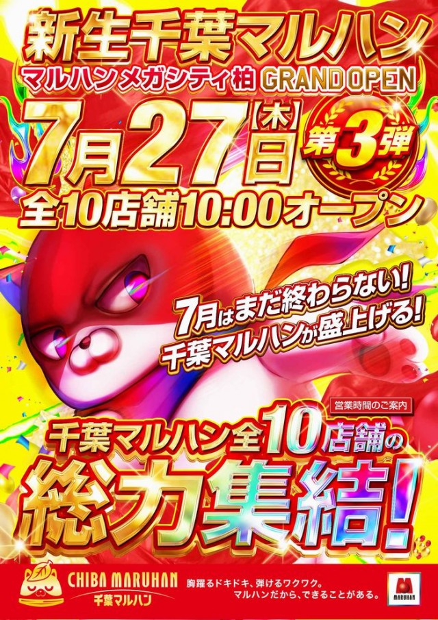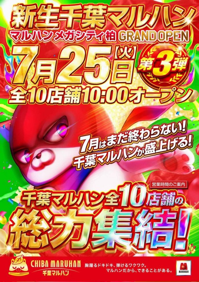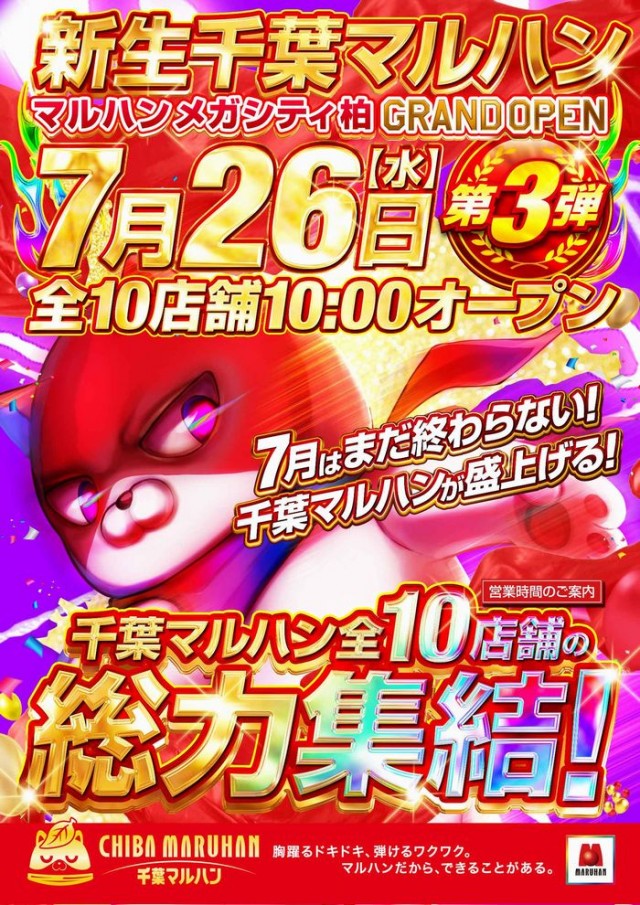 【7月ラストスパート】7/26(水)新台入替!朝10時開店!