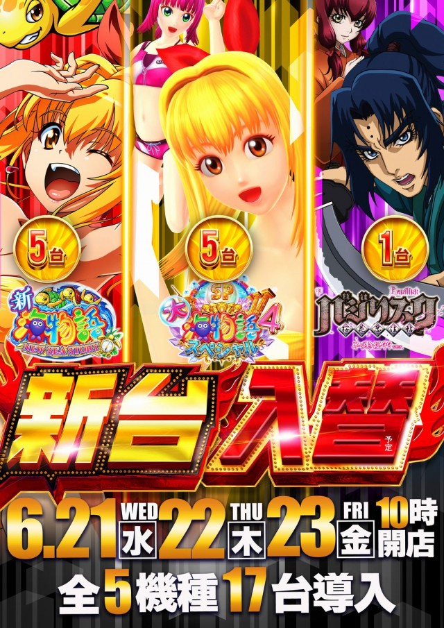 14日【水】新台入替2日目!6月は21機種70台導入予定!