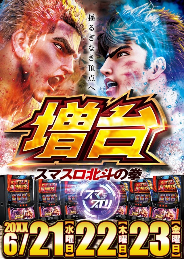 6月21日(水)新台入替10時オープン!スマスロ北斗増台‼