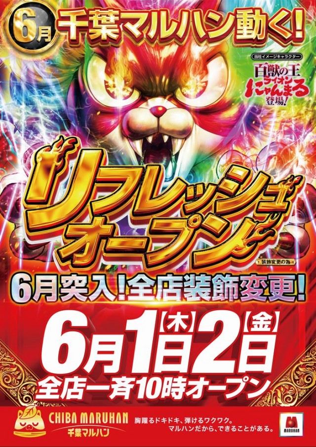 6月2日(金)6月突入!千葉マルハン全店一斉10時OPEN!