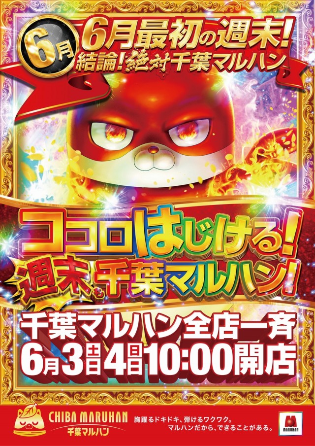 6月1日(木)6月突入!千葉マルハン全店一斉10時OPEN!