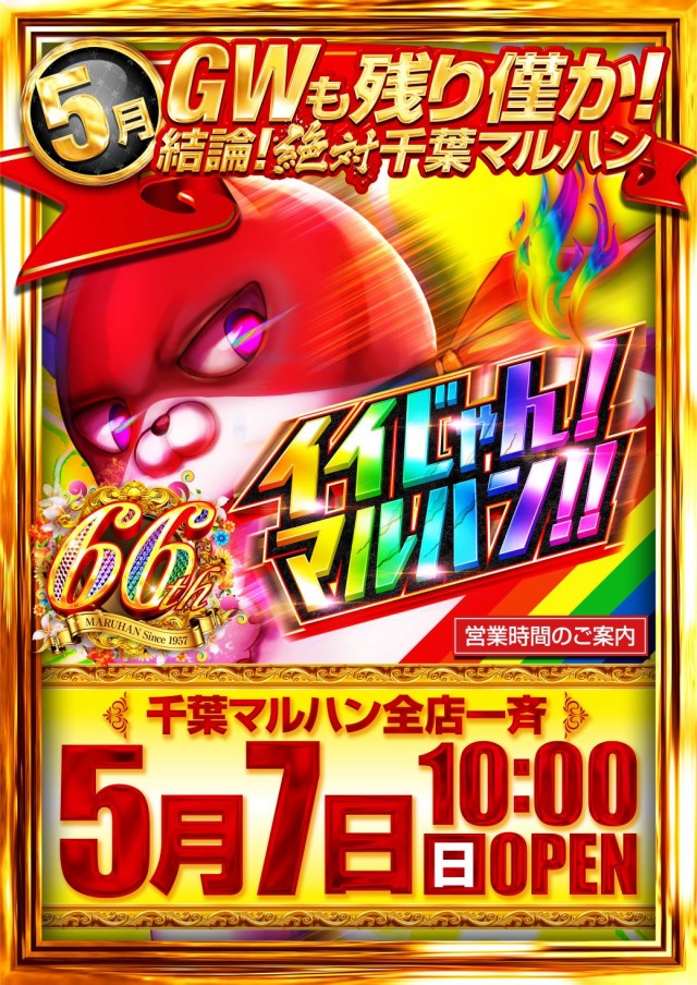 5月10日(水)千葉マルハン全店10時開店! 117台導入