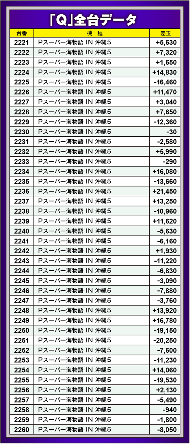 1月の3回は、『P牙狼 月虹ノ旅人』が好調モードまっしぐらでかなり好状況だったわけだが、今回は『Pスーパー海物語 IN 沖縄5』に注目が集まっていた。全40台のトータル差玉こそマイナスとなってしまったが、10,000玉オーバーが9台も出現するなど、沖海5の底力をしっかり堪能させてくれたぞ!