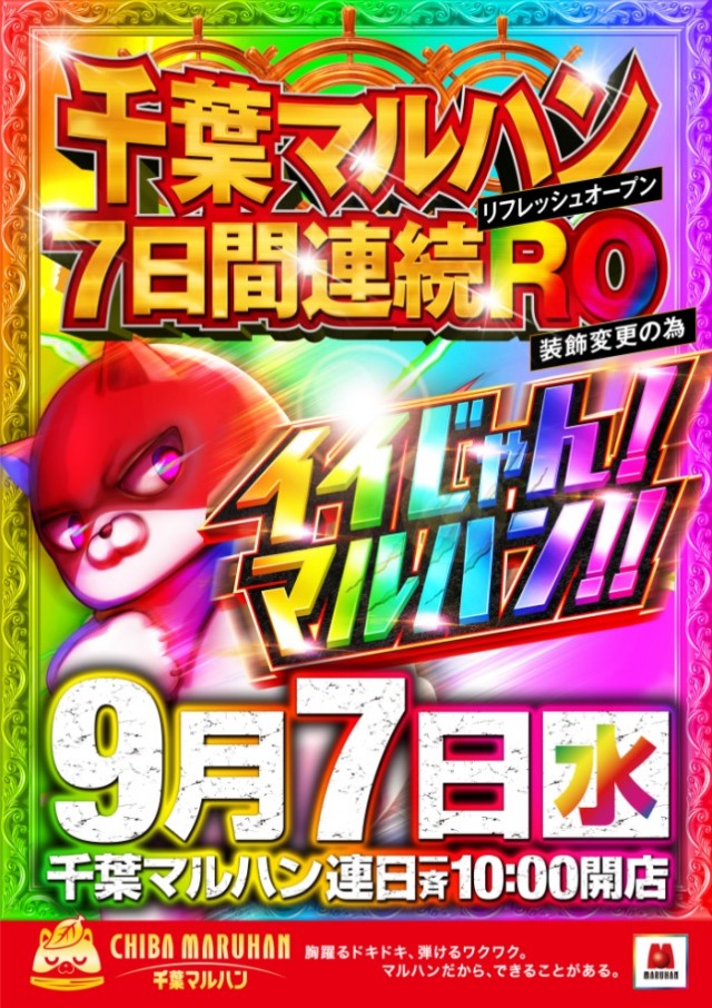 9月7日(水)10時開店!7日連続RO!いくぜ!千葉マルハン