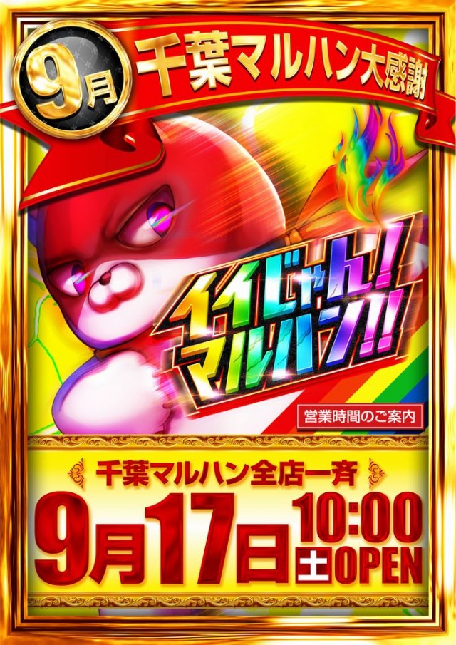 9月17日(土)千葉マルハン全店一斉10時開店‼