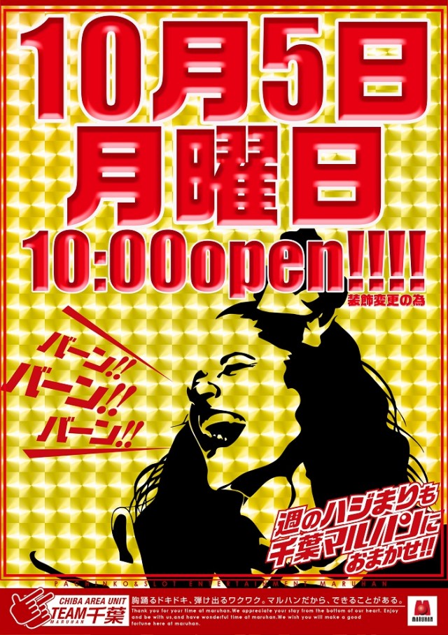 10月5日(月)週の始まりも千葉マルハンにおまかせ!!